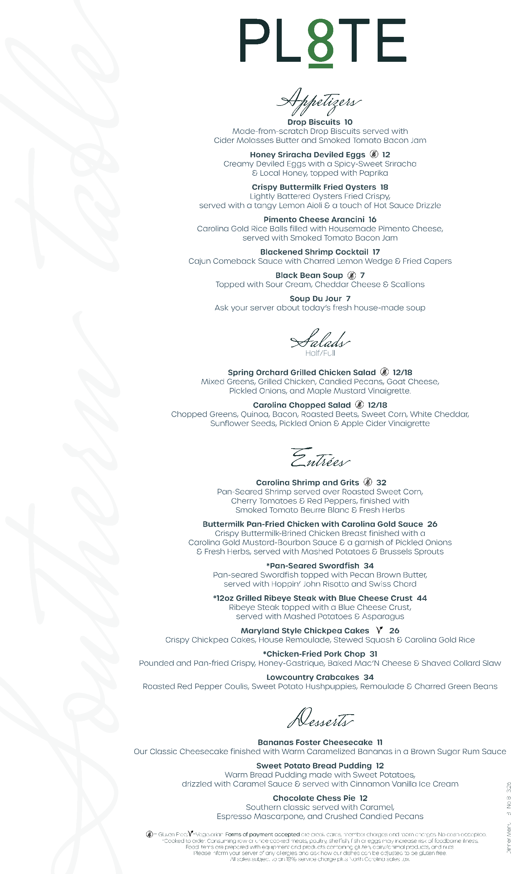Start your day with a hearty and convenient breakfast, enjoy a fresh and creative lunch or relax over cocktails and light bites. As the sun sets, savor an artfully prepared dinner — from buttermilk pan-fried chicken with Carolina Gold sauce to Swordfish with Hoppin’ John Risotto or Ribeye with Blue Cheese Crust. With signature cocktails, local craft brews, and decadent desserts like sweet potato bread pudding or pecan pie cheesecake, PL8TE is more than a restaurant — it’s a flavorful highlight of your Pinehurst experience, and our newest must-try destination for bold flavors and Southern comfort.